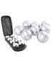 В комплекте: 8 больших шаров для бросков, 1 маленький шар-мишень «кошонет», мерная веревка с колышком для очерчивания круга (пригодится в спорных ситуациях, когда нужно определить чей мяч ближе к кошонету), футляр с каркасом для хранения и переноски игры, брошюра с правилами игры.
