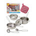 Прекрасный набор посуды для маленькой хозяйки. Все как у мамы! В наборе 12 предметов: кастрюли, прихватка, половник, шумовка, лопаточка и прочее.