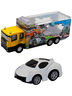 Необычный комплект из грузовика с прозрачным кузовом и металлической гоночной машинки удивит и порадует любого начинающего автомобилиста. У грузовика откидывается кузов, а внутри есть спусковой механизм для заезда гоночной машины, как у настоящей техники. Одно нажатие кнопки - и машинка устремляется вперед! С помощью специального крепления можно соединить вместе два грузовика для синхронных заездов. Кто придет к финишу первым?!Грузовик с металлической кабиной, спусковой механизм для гоночной машины в кузове, металлическая гоночная машина с фрикционным механизмом, резиновые колеса. Внимание! Использовать только под непосредственным наблюдением взрослых.