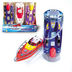 Яхты работают от батареек. Вставить батарейку, как показано на рисунке. Опустите яхту на воду, и она поплывёт. Направление движения задаётся с помощью руля на нижней части кормы. Достаньте яхту из воды, двигатель остановится.