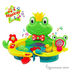 Замечательная музыкальная лягушка, в корону к которой малыш закидывает разноцветные пластиковые шарики. Дальше шарики весело катятся по желобам, причем препятствия могут этому помешать. Препятствия следующие: озорной лягушонок с зеркалом (проворачивается) и бегемотик, лежащий под цветком (цветок выступает в роли рычага, с его помощью открывается и закрывается пасть бегемота). Также здесь еще есть целое озеро, на поверхности которого находится лилия с отверстием для шариков, спящая черепашка и утенок. Пруд под утенком крутится – сначала закручиваем , а потом сам пруд вместе с утенком начинает кружиться в обратную сторону. У музыкальной царевны лягушки – замечательный бантик, он мигает и светится! Игрушка понравится даже самым маленьким деткам, которые смогут играть в нее вместе со своими родителями. Ну а детки постарше справятся с озорной лягушкой самостоятельно.