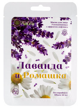 Маска для лица тканевая успокаивающая с эффектом лифтинга Лаванда и Ромашка, 20 мл, Arcana Natura