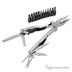 • Функции: плоскогубцы, кусачки, нож с зубчатой режущей кромкой, пила, шило, двухсторонний напильник, консервный нож