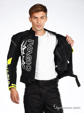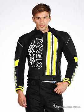 Мотокуртка Ivagio мужская, цвет черный / серебристый / лимонный