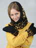 Теплый капор станет незаменимым аксессуаром в холодное время года. Декорирован оригинальным принтом. В комплекте варежки.