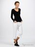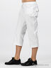 Капри прямого покроя из приятного на ощупь материала. Отрезной пояс, есть шлевки для ремня. Застегиваются на молнию и пуговицу. Четыре кармана.