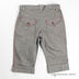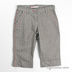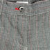 Модель прямого кроя застегивается на пуговицу и молнию. К поясу пришиты петли для ремня. Два передних кармана, два задних кармана на пуговице. К брючинам пришиты декоративные отвороты. Контрастная прострочка.