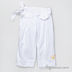Модель свободного кроя без застежок. В пояс вшита резинка, в петли для ремня встален декоративный пояс завязаный в бант. К передним петлям пришиты декоративные пуговицы. На левой брючине снизу декоративная вышивка.