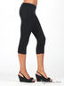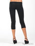 Трикотажные капри из нежного, приятного на ощупь материала. Верх изделия посажен на резинку. Низ брючин присборен на резинку и украшен пуговицами по боковому шву.
