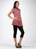 Трикотажные капри из нежного, приятного на ощупь материала. Верх изделия посажен на резинку. Низ брючин присборен на резинку и украшен пуговицами по боковому шву.