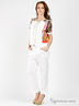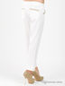 Детали: отрезной пояс без шлевков для ремня, два прорезных кармана спереди, два накладных сзади. Застежка на пуговицу и молнию. Карманы модели декорированы контрастным кантом и металлическими кнопками.