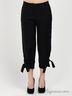 Прекрасные капри из тонкой льняной ткани. Неотрезной пояс дополнен широкой резинкой. Застежка на пуговицу и молнию. Спереди два накладных кармана. Укороченные слегка зауженные брючины декорированы лентами в патах на манжетах. Отлично подойдет как для офиса, так и для отдыха.