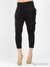 Оригинальные капри из плотной, мягкой ткани. Отрезной пояс со шлевками для ремня. Застежка на пуговицу и молнию. Модель с тремя объемными накладными карманами с клапанами на пуговицах. Зауженные брючины с манжетами на молниях.