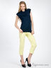 Капри прямого силуэта из плотного хлопка. Отрезной пояс. Шлевки для ремня. Пять карманов. Внизу брючин широкие манжеты.