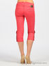 Женские капри из легкого денима. Отрезной пояс, есть шлевки для ремня. Застегиваются на молнию и две пуговицы. Два прорезных кармана спереди, два сзади. Низ брючин по внешнему шву посажен на кнопки.