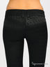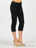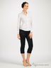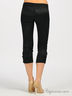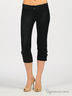 Капри прямого покроя из жаккардового лоснящегося материала. Широкий отрезной пояс. Есть шлевки для ремня. Застегиваются на молнию и две пуговицы. Брючины с манжетами на пуговицах.