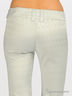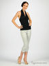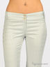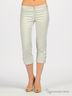 Капри прямого покроя из жаккардового серебристого материала. Широкий отрезной пояс. Есть шлевки для ремня. Застегиваются на молнию и две пуговицы. Брючины с манжетами на пуговицах.
