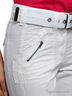 Карманы карго и карманы с молниями спереди, накладные карманы с клапанами сзади. Швы и отстрочка. Низ с планками и пуговицами для фиксации отворотов. Пояс со шлевками, застежка на молнию и пуговицу. Текстильный ремень с металлической пряжкой в комплекте.