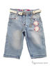 Капри с двумя карманами и на ремне, застежка на пуговицу и молнию. Ремень украшен цветочками с декоративным камнем и цепочкой. Капри украшены вышивкой и цветочками.