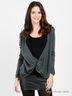 Детали: v-образный вырез горловины с запахом, длинный прямой рукав, края полочки пристрочены к боковым панелям
