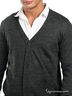 Стильный мужской кардиган с V-образным вырезом и застежкой на пуговицы. Спереди расположены два удобных накладных кармана. Манжеты рукавов и низ изделия оформлены в рубчик.