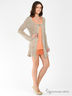 Детали: округлый вырез горловины, застежка на крупную пуговицу, длинный прямой рукав, оригинальная вязка