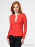 Очаровательный трикотажный кардиган классического покроя. V-образный вырез. Застегивается на пуговицы в тон. Длинные рукава с фактурой.