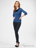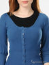 Очаровательный кардиган синего цвета из приятного на ощупь трикотажа. Широкая круглая горловина. Рукава 3/4 с широкими манжетами. Застегивается на пуговицы. Манжеты и линия талии выполнены из трикотажа в рубчик.