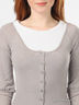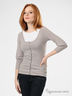 Очаровательный кардиган светло-коричневого цвета из приятного на ощупь трикотажа. Широкая круглая горловина. Рукава 3/4 с широкими манжетами. Застегивается на пуговицы. Манжеты и линия талии выполнены из трикотажа в рубчик.