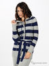 Стильный кардиган окутает Вас теплом в холодные дни и придаст образу нотку романтичности. Прямого кроя. Очень мягкая ткань. Застегивается на кнопки. Прямого кроя. оригинальный капюшон с продетой лентой в основание горловины. Длинный прямой рукав на пристроченной трикотажной резинке в рубчик. Два накладных кармана. Изделие дополнено поясом, завязывающимся спереди.
