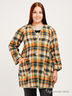 Элегантный кардиган, приталенный за счет вытачек спереди и сзади. Все вытачки и швы декорированы отделочными строчками. Воротник-стойка и изящный отложной воротничок. Красиво подчеркивающий фигуру покрой. Шлевки для ремня. Спереди сплошная застежка на пуговицы. Верхняя пуговица-брошь. Длинные рукава с широкими манжетами на пуговицах-запонках. Закругленный низ спереди, прямой сзади.
