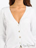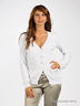 Легкий трикотажный кардиган прилегающего силуэта. Длинный прямой рукав с манжетой. Глубокий вырез горловины. На полочке застежка на перламутровые пуговицы. Спереди накладные карманы, декорированные цепочкой.