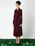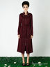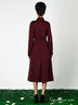 Кардиган из трикотажа бордового цвета с накладными карманами и декоративными бортами по всей длине изделия, на больших пуговицах. По плечам погоны. Модель дополнена поясом в тон кардигану. Длина изделия около 116 см.