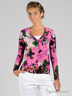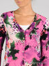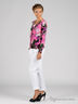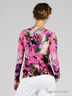 Яркий джемпер, выполнен из очень эластичного трикотажа. Классический крой. Округлый вырез горловины, застежка на пуговица, обтянутые тканью в тон. Длинный рукав. Манжеты и низ изделия выполнены в виде трикотажной резинки в мелкий рубчик.