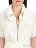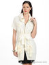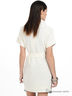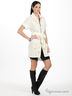 Детали: отложной воротник на кнопке, короткие рукава, застегивается на молнию, спереди 2 накладных кармана, украшен атласными лентами, талия со шлевками на ремне