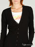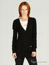 Трикотажный кардиган прямого кроя. V-образный вырез горловины. Застегивается на пуговички. 2 накладных кармана, один из которых украшен бантиком.