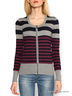 Мягкий кардиган со стильным рисунком полосок. Застежка на молнию. Круглый вырез. Края в рубчик.