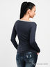 Детали: широкий вырез горловины, длинные рукава, на полочке принт со стразами