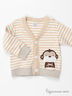 Кардиган с длинным рукавом и V-образным вырезом горловины застегивается на пуговицы. Планка, манжеты и низ изделия - трикотажные резинки. Полочка украшена нашивкой и вышивкой.