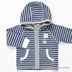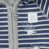Стильный кардиган в полосочку с изображением мишки и обозначением названия фирмы. Спереди расположены открытые карманы.