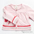 Розовый кардиган для девочки. Модель прямого кроя застегивается на четыре пуговицы на полочке по всей длине изделия. Сборка на полочке. Полочка, подол и манжеты украшены пришиты тканевыми элементами.