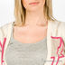 Стильный кардиган из мягкого трикотажа с глубоким V-образным вырезом горловины. Пояс и манжеты рукавов декорированы полосками в тон основному узору.