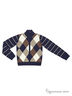 Джемпере с длинными рукавами и высоким воротом. Застежка на молнию. Изделие выполнено в стильной классической расцветке "ромб". Рукава модели выполнены в контрастную по цвету полоску.