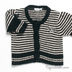 Детали: округлый вырез горловины, застежка на пуговицы, укороченный рукав посажен на манжету и украшен атласным бантиком, полочка декорирована нашивкой и стразами