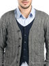 Детали: на пуговицах; декорирован хлопчатобумажной вставкой с эффектом двойки; три кармана; манжета и резинка в рубчик; оригинальный рисунок вязки