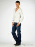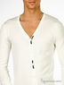 Классический мужской трикотажный кардиган белого цвета . Застегивается на пуговицы. Манжеты и низ изделия посажены на трикотажную резинку. Выполнен из легкого и теплого, приятного на ощупь материала.