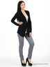 Превосходный кардиган с поясом для придания силуэта. Выполнен из эластичной трикотажной ткани. На спинке изделие украшено стразами.