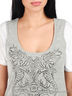 Превосходный кардиган с глубоким V-образным вырезом с застежкой на кнопки. Сзади принт из серебряных страз в виде птицы. Манжеты рукавов и низ изделия выполнены из трикотажной резинки.