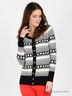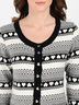 Модный кардиган из трикотажа средней плотности с добавлением ангоры с округлым вырезом горловины и длинным рукавом. Застежка на пуговицы, изделие украшено рисунком. Будьте неповторимой.