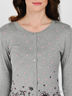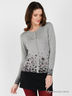 Практичный кардиган из эластичного вискозного трикотажа средней плотности с округлым вырезом горловины и длинным рукавом. Застежка на пуговицы. Изделие украшено принтами и стразами. Шикарный вариант на каждый день.